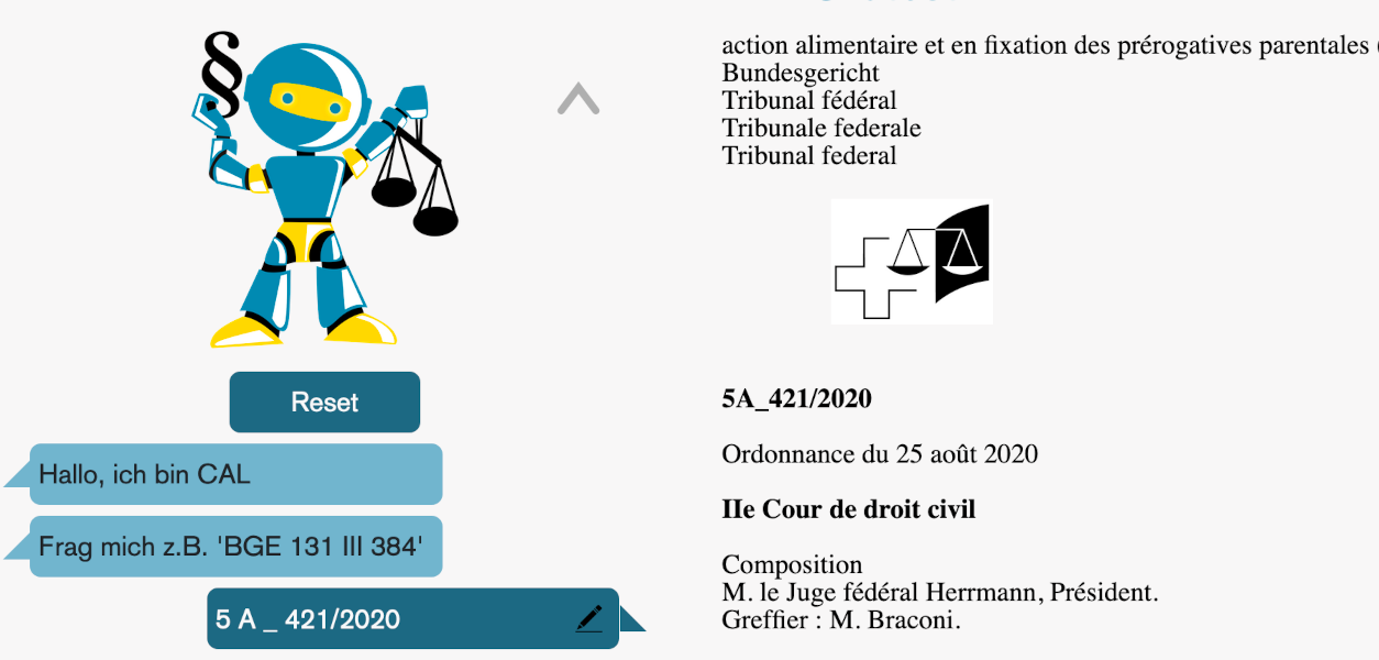 Falls CAL nichts gefunden hat, versuchen Sie es mit einer alternativen Formulierung, wie sie auch in der gesuchten Publikation vorkommen könnte. Bei Bundesgerichtsentscheiden kann sich die Formulierung in einer anderen Amtssprache lohnen. Für CAL ist eine sprachübergreifende Suche geplant, aber noch nicht aufgeschaltet.